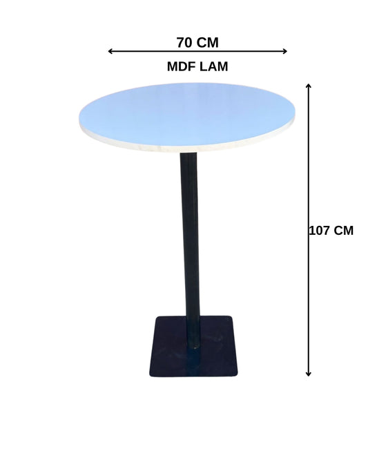 Çağlar Metal Kokteyl Bistro Masa 70 cm Tabla Çapı 107 cm Yükseklik MDF Lam Üst Tabla Metal Ayak Bar Masası